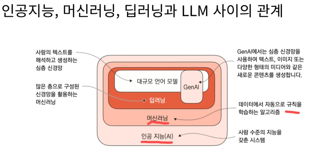 LLM (대규모 언어 모델)은 인공지능(AI)의 큰 범주 아래, 머신 러닝과 딥러닝(신경망) 모델의 한 종류입니다.
