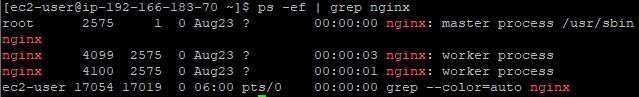 엔진엑스가 정상적으로 구동하고 있으면 마스터 프로세스와 워커프로세스가 1개 이상 있습니다.